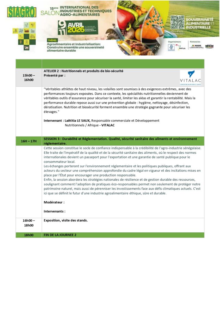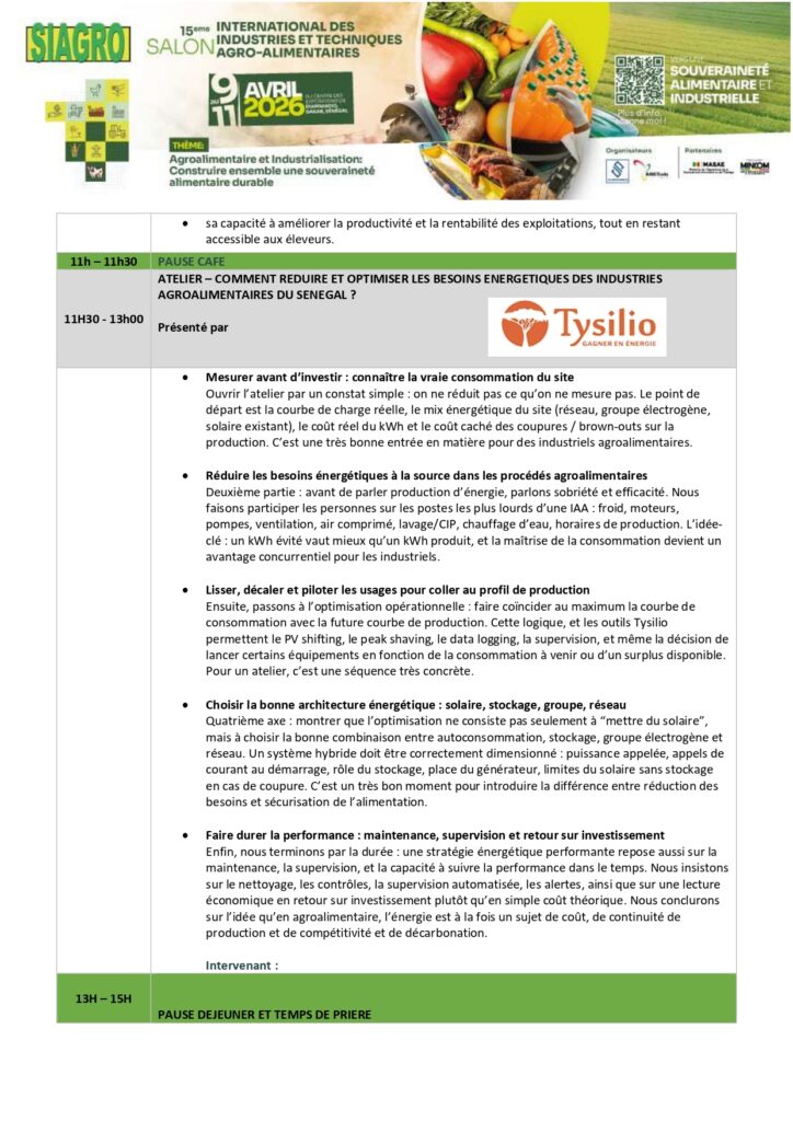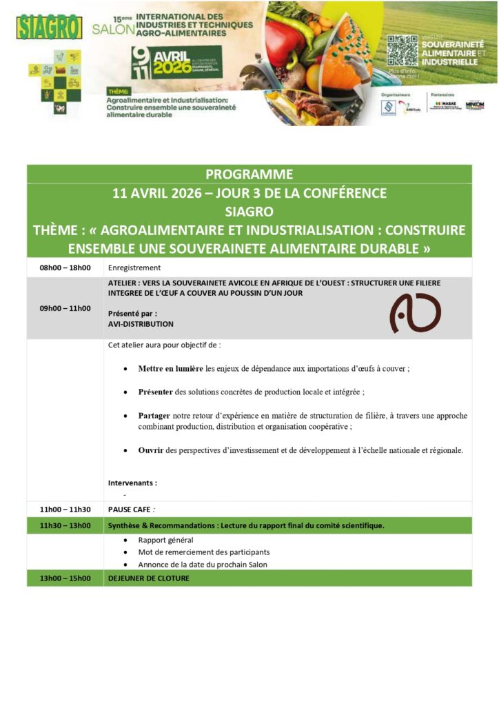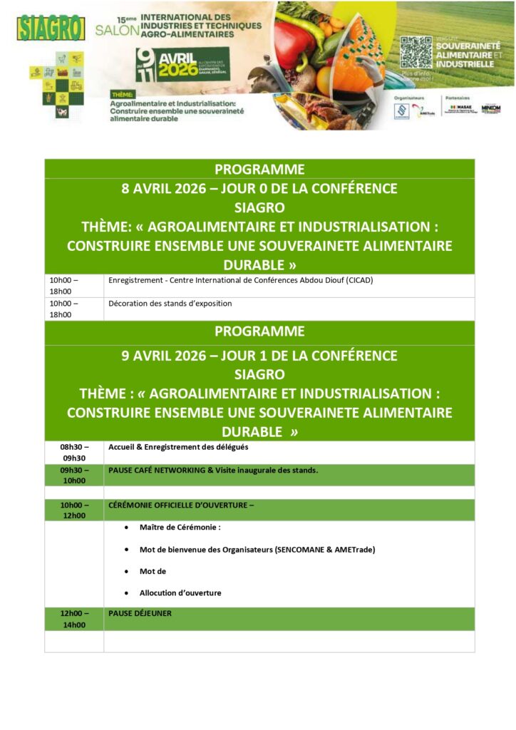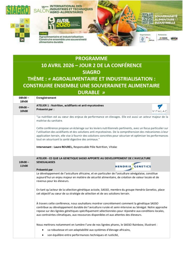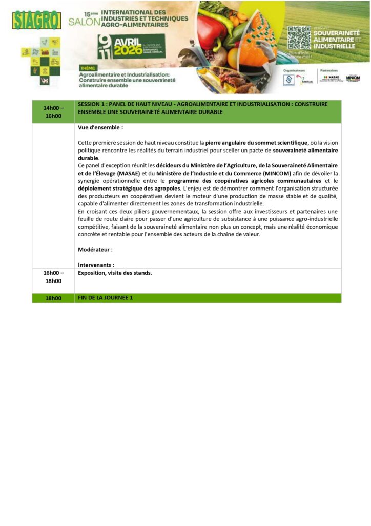 PROGRAMME SCIENTIFIQUE DU SIAGRO 2026